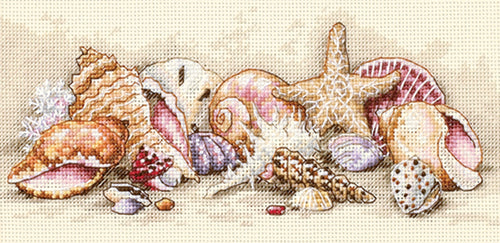 DIMENSIONS-The Gold Collection Petite: Counted Cross Stitch Kit. Gorgeous images, phenomenal detail and the highest quality of materials available go into every Gold Collection kit by Dimensions. Each of these counted cross stitch kits feature easy to follow charts that include the use of half stitches to elicit finer details and more realistic shadows. This kit contains 18 count ivory Aida, 100% cotton thread, needle and easy to follow instructions. Frame/Mat are not included. Finished size: 4x8in. Design: Seashell Treasures. Designer: Todd Trainer. Imported.
