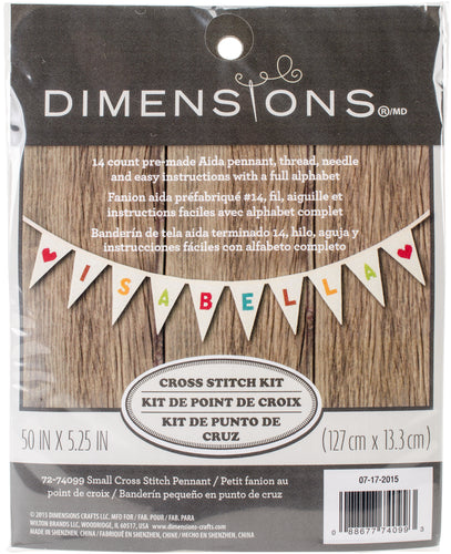 Festoon a wall, table or bar with this festive cross stitch pennant. It's easy to personalize with the included charted alphabet. This package contains: 50x5.25 inch 14 count pre-finished Aida pennant, thread, needle and instructions with alphabet. Imported.