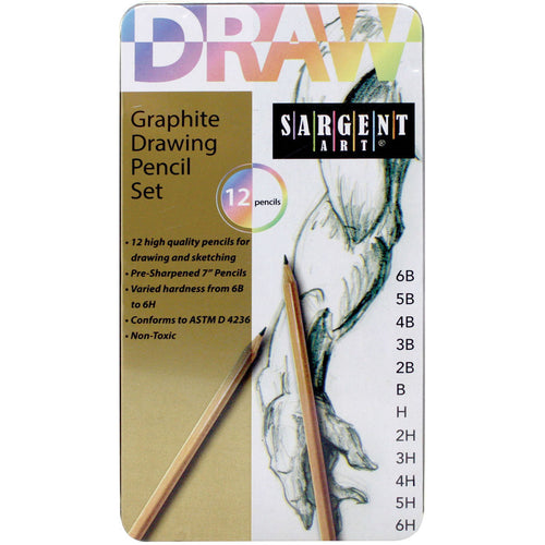 Pencil tin contains 12 high quality, pre-sharpened 7 inch pencils for drawing and sketching. Verified hardness from 6B to 6H. Non-toxic. Conforms to ASTM D4236. Recommended for ages 3 and up. WARNING: Choking Hazard. Not suitable for children under 3 years. Imported.
