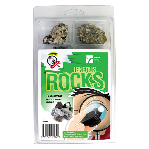 Part of the EXPLORE WITH ME GEOLOGY„ series, the Igneous Rock Collection includes a set of 10 specimens enclosed in a handy, plastic storage container. The included rock identification chart, complete with images and a brief description will help kids better understand how igneous rocks are created. A perfect starter set for the young budding geologist!