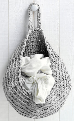 Hoooked-Storage Bag Kit With Zpagetti Yarn. This easy-to-crochet kit is perfect for creating modern crochet home decor. Kit includes yarn, hook, pattern and comes with deluxe gift packaging. Completed storage bag is machine washable in warm 105F. Lay out horizontally for drying. The complete kit coitnains two balls of Hoooked Zpagetti t-shirt yarn, one handmade bamboo crochet hook, Hoooked pattern and gift packaging. Zpagetti yarn contains 90% recycled cotton and 10% other recycled fibers. Imported.