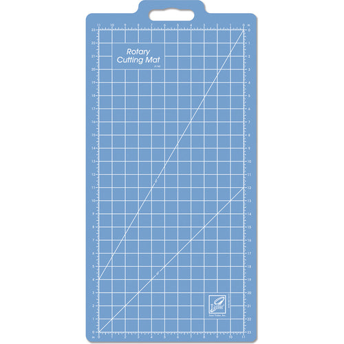 JUNE TAILOR-Gridded Rotary Mat With Handle. A perfect way to make rule markings outside cutting grid. The hard surface has superior durability. Will not warp or crack. This package contains one 13x25 inch rotary cutting mat with an 11x23 inch grid. Made in USA.