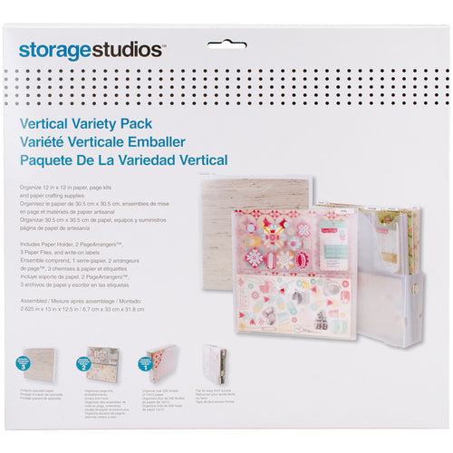 ADVANTUS-Vertical Variety Pack. Organize all of your crafting paper with this variety pack of files. This pack includes one paper holder, two PageArrangers, three paper files, and write on labels. They fit 12x12 inch paper so it's perfect for your paper crafts. This package contains one variety pack. Imported.