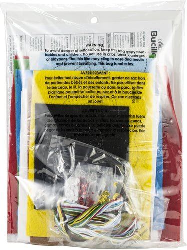 Stitch up some fun with these counted cross stitch set! This 12.5x9.25 inch package contains stamped felts, cotton floss, color separated sequins and beads, two needles, and instructions. Creates 15x18 inch wall hanging applique when finished. WARNING: Choking Hazard. Not suitable for children under 3 years. WARNING: May contain items with sharp edges. Handle with care. Imported.