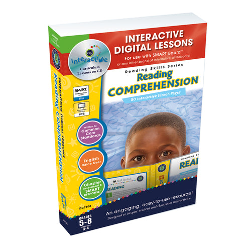 Introduce the essential building blocks of reading with our engaging and highly interactive 80 screen-page digital lesson plan. We emphasize important concepts of reading comprehension including context clues, determining the main idea, and understanding inferences. Learn how graphic organizers can help student's reading comprehension by introducing the reading skills that are basic to reading fluency and understanding in all subject areas and situations. Reading is the most essential communication skill in our society and a child's ability to read and comprehend the written word is his or her touchstone to success in school and in life. Each ready-made screen contains reading passages, before and after you read interactive activities, test prep, comprehension quiz, memory match game, crossword, word search, Text to Speech, and even supporting video & audio. Test your student's comprehension of the lesson with a Comprehension Quiz. Create an opportunity for students to get more involved in the lesson. All of our content is aligned to your State Standards and are written to Bloom's Taxonomy.