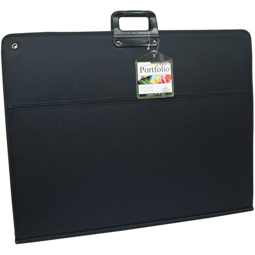 Keep your projects safe and dry as you carry them to and from class. Features woven binding, double zipper, storage pockets, hard plastic handles and shoulder strap. This package contains one 28x22.5 inch portfolio designed for 20x26 inch sheets. Imported.