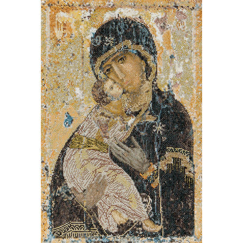 THEA GOUVERNEUR-Our Lady Of Vladmir On Aida Counted Cross Stitch Kit: Eighteen Count. Inspired by nature, these kits are detailed using a variety of colors with results that are realistic and true to nature! The more experienced cross stitcher will enjoy working on linen. This package contains one 8-45/64x13-13/64 inch piece of linen Aida, pre-sorted DMC floss, one John James needle, one easy-to-follow chart and instructions in English. Imported.