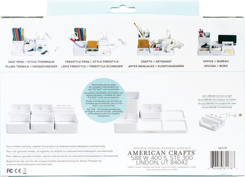These interlocking pieces allow for complete customization for your Foil Quill (sold separately) and accessories. Also great for craft storage, office storage and more! This 11.75x7.75x2 inch package contains interlocking storage pieces with three USB ports. Imported.