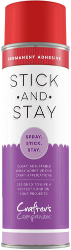 Stick and Stay is a permanent craft adhesive which can be repositioned for up to two minutes before creating the perfect bond. It is a permanent, repositionable adhesive for paper crafting, but can be used for some fabrics, cardboard, plastics and polystyrene. This package contains 6.91oz of stick & spray adhesive. WARNING: Extremely flammable. Contents under pressure. Conforms to ASTM D 4236. Imported.