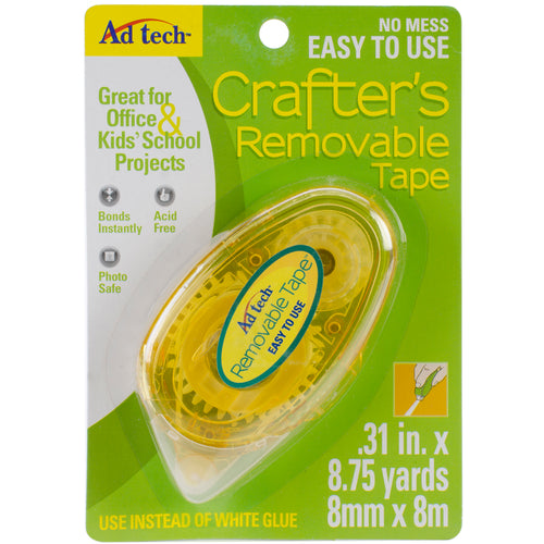 AD-TECH: Crafter's Tape Repositionable Glue Runner. This no mess tape runner is great for the office, kids school projects and more. It is easy to refill and convenient for use. This package contains one dispenser and .31inx8.75yds of removable tape. Imported.