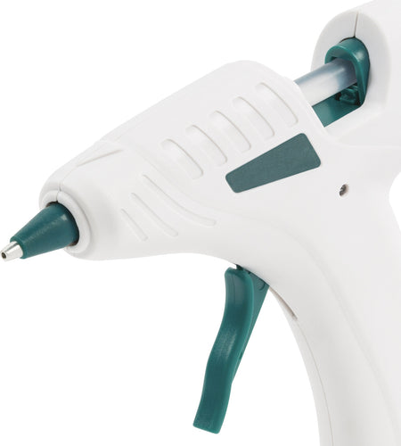 The Lia Griffith Low-Temp Cordless Glue Gun features battery (4 AA) power that lets you create anywhere free from the constraints of a cord. The low temp high quality nozzle provides even glue flow. The smooth trigger lets you control the glue flow for added precision. The easy access glue stick port allows for fast refills. A flip out stand provides a convenient way to rest your glue gun when not in use. Package includes one glue gun and two glue sticks. Glue gun uses four AA batteries (batteries NOT included). Designer: Lia Griffith. Imported.