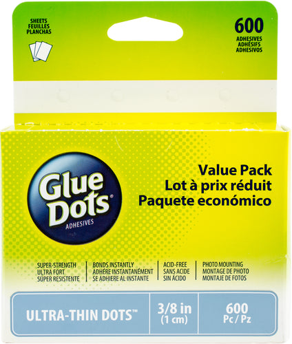 Glue Dots-Ultra Thin Dot Sheets Value Pack: Clear Dots. Use them for school at home or anywhere you need a strong, secure bond. This package contains 600 0.5 inch clear dots. Non-toxic. Acid free. Conforms to ASTM D 4236. WARNING: Choking Hazard- small parts. Not for children under 3 years. Made in USA.