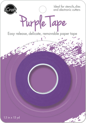 Purple tape is a must-have item in any craft room! This easy release, removable tape does not leave any adhesive residue behind and peels easily without tearing paper. It's ideal for anyone who die cuts, stencils or uses electronic cutters. This package contains one 15 yard roll of 1.5 inch wide purple tape. Made in USA.