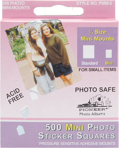 PIONEER-Mini Photo Self-Adhesive Squares. Adhere photos, journaling shapes and more with ease: just press on and these handy little acid free squares will hold your photos and more in place for years of protection. This package contains 500 1/4in squares. Imported.