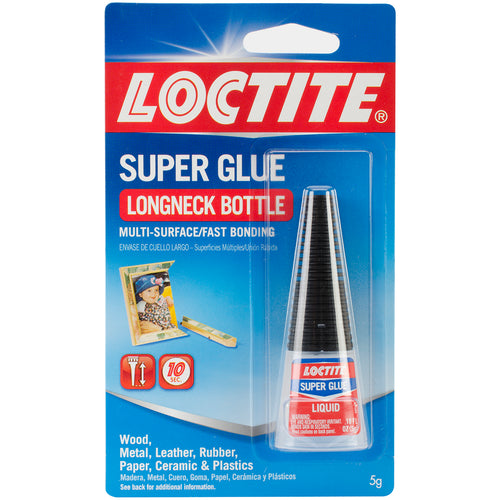 HENKEL-Loctite Super Glue Long Neck Bottle. The precision tip on the Loctite Super Glue Long Neck Bottle allows controlled application without dripping. The easy-open cap features a metal pin that clean and seals the nozzle for clog-free performance. The long neck bottle is ideal for gluing in hard-to-reach areas. This package contains one 0.18 ounce/5 gram bottle of Super Glue. Conforms to ASTM D4236. Imported.