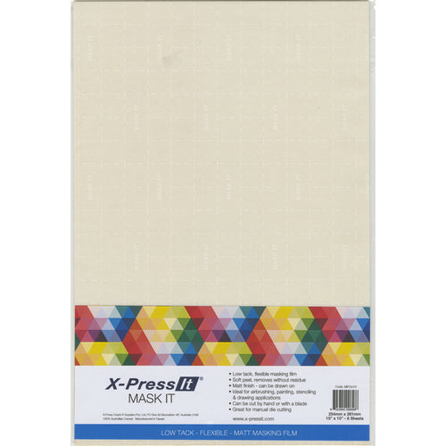 Perfect for detailed projects that require layers of color. The clear matte finish is great for tracing and works well with a light box. Simply peel off the backing, adhere to an image that is on scrap paper, cut out the image, peel off the Mask It and place it over the like image on the final crafting surface. The image can then be given a background effect by spraying with inks, etc. Remove the re-usable Mask-it image and it's done! This package contains eight 10x15 inch sheets of transparent film. Imported.