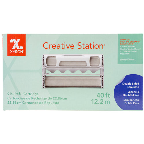 Laminate protects and preserves items such as recipe cards, ID badges, luggage tags, kids' artwork, maps, documents and memorabilia! Cut through laminate without peeling. Use with Xyron Creative Station Home, Xyron nine inch and 900 Creative Station. This 11.5x6.25 inch package contains forty feet of nine inch wide laminate refill cartridge. Made in USA.