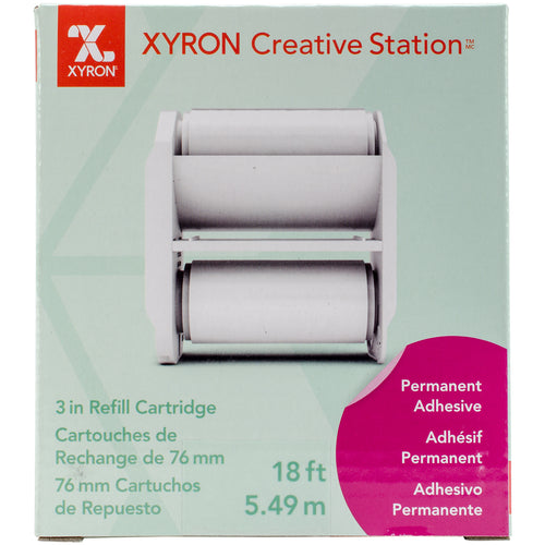 Xyron-Creative Station Permanent Adhesive Refill. This high quality permanent adhesive covers the back of your item from edge-to-edge for a bond that lasts. Create beautiful projects using canvas, burlap, fabric, cork, wood, glass and so much more! Use with Xyron Creative Station (sold separately). This contains one 3 inch refill cartridge with 18 feet of adhesive. Non-toxic. Acid free. Imported.