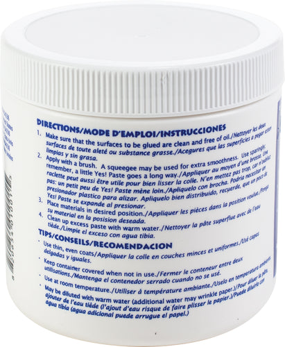 YES-Great for book altering, paper layering, scrapbooking and more. Ultra thick paste consistency keeps it where it's needed and does not leave bubbles and wrinkles behind. Water based, clear when dry, non-toxic, slow to set, recyclable and acid free for archival work. Use on paper, leather, cloth, tin, wood, imitation leather, glass, metal and printed surfaces. 1 pint = 2 cups or 16 ounces.