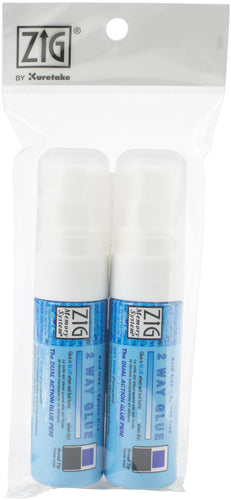 The glue is blue when wet and clear when dry. For a permanent hold, apply glue to one paper surface and adhere it to another paper surface. For a repositionable hold, apply it to a paper surface and allow it to dry clear before adhering it to the other paper. This package contains two 5 inch long 2-way jumbo tip glue pens. Conforms to ASTM D 4236. Imported.