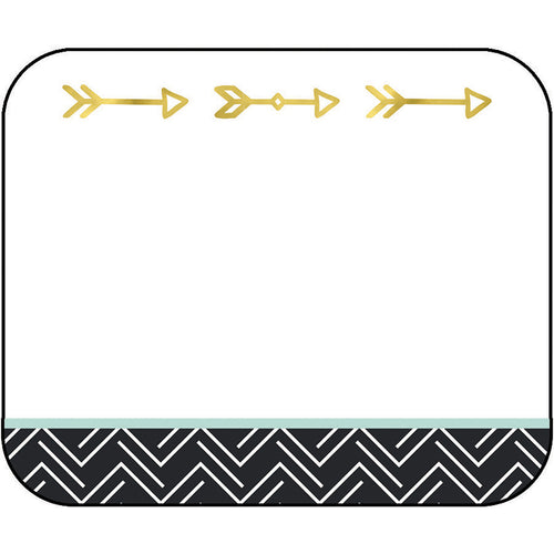 Give your classroom a modern look with the Aim High collection. Each of the 40 Aim High name tags features three gold rows and a classic black-and-white design. These tags make it easy to stay organized in style! Whether you're labeling items in the classroom or taking students on a field trip, name tags are an essential organizational tool. These self-adhesive tags can be placed on storage boxes, folders, cubbies, and shelves to ensure everything stays in place. Make sure to view our other Aim High products to create a cohesive and contemporary classroom theme.