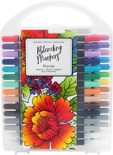 Easy to use, water-based blending markers that add color, shading, and detail to projects. Perfect for hand lettering. Includes five coordinating colors. This 7.75x10.75 inch package contains 30 non-toxic blending markers. Conforms to ASTM D4236. Made in USA.
