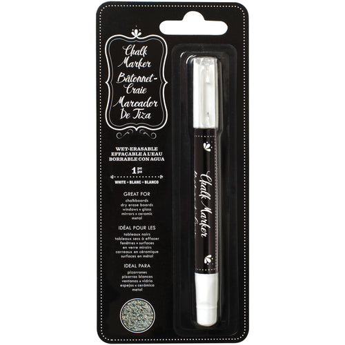 American Crafts-Erasable Chalk Markers: White. Great for chalkboards, dry erase boards, windows, glass, mirrors, ceramic and metal! This package contains one white erasable chalk marker. WARNING: This product contains chemicals known to the State of California to cause cancer, birth defects or other reproductive harm- do not mouth or chew. Conforms to ASTM D 4236. Imported.