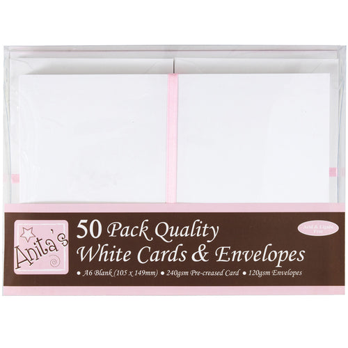 Docrafts-Anita's Cards/Envelopes A6: White. Add a personal touch to your holiday cards! These cards and envelopes are the perfect start to creating your own message. This package contains fifty 5-3/4x4 inch white cards and fifty 5-3/4x4 inch white envelopes. Acid and lignin free. Imported.