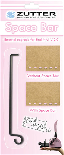 ZUTTER-Bind-It-All Space Bar. Installing this space bar will adjust perforations closer to the edge of the paper. Perforated holes closer to the edge will allow proper performance when using smaller diameter Owire bindings (3/8 and 1/2 inch). This package contains one space bar. An essential upgrade for Bind-It-All V2.0. Imported.