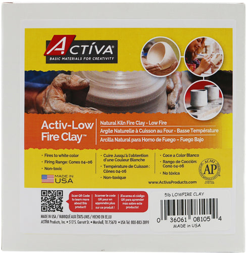 ACTIVA-Blackjack Low Fire Clay. This clay allows for the most imaginative arts and crafts projects! This clay is a blend of air drying natural clays and is ideal for crafting including hand building, wheel throwing, sculpture, and modeling. This package contains 5 pounds of clay. Color: Grey/White. Non-toxic. Made in USA.