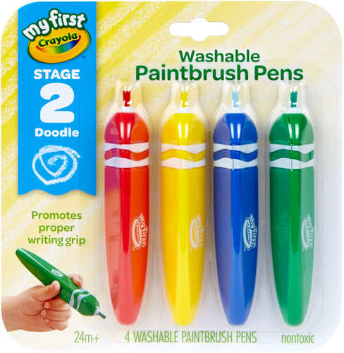 Ultra-Clean Washable Tripod Grip Paintbrush Pens are perfect for the beginning artist. The triangular shape is easy to grasp while guiding little fingers to a proper writing grip. The triangular shape also prevents paintbrush pens from rolling away and getting lost. This 7.25x7.5x1 inch package contains four washable paintbrush pens in assorted colors. Non-toxic. Conforms to ASTM D 4236. Recommended for ages 2 and up. Imported.