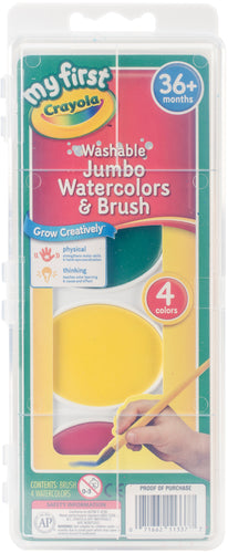 The beginning painter can explore bold, washable paint colors with a thick, easy-to-grip paint brush. Comes with four large oval paint pans in red, blue, yellow and green. Includes a thick paint brush for little hands and a restorable plastic case. Nontoxic. WARNING: Choking Hazard. Not suitable for children under 3 years. Conforms to ASTM D4236. Imported.