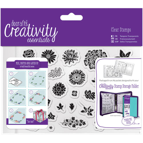 Docrafts-Creativity Essentials A5 Clear Stamp Set: Trad Floral. Print, pattern and layer with these innovative clear stamps! Easily file away in the Creativity Essentials Stamp Storage Folder (sold separately). This package contains thirty clear stamps on one 4- 1/2x6-1/4 inch backing sheet within one A6 pocket. Imported.