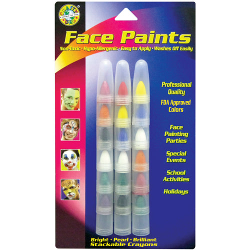 CRAFTY DAB- Stackable Face Paints. These professional quality face paints are non-toxic, hypo-allergenic, and easy to apply! Use them at parties, special events, school activities, holidays and more! These paints come in small stackable cases so you can easily store them in a pocket or art kit. This package contains 18 colors Conforms to ASTM D4236 Imported.