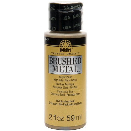 Plaid-FolkArt: Brushed Metal 2oz. This indoor/outdoor acrylic paint creates a matte, brushed finish effect while offering superior coverage. Cleans up with soap and water. Water-base non-toxic. This package contains 2oz of acrylic paint. Comes in a variety of colors. Each sold separately. Conforms to ASTM D4236. Made in USA.