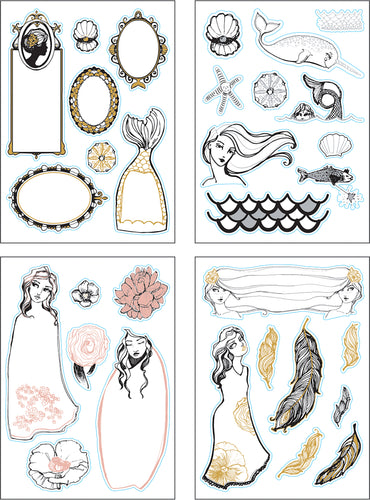 Jane's artwork is ready to color using inks, markers and paints with these matte, foiled stickers! This clever sticker booklet contains 62 ready-to-color stickers in all! This package contains eight 4.75x7.125 inch sheets of stickers, two each of four designs. Imported.