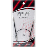 Knitter's Pride-Karbonz Fixed Circular Needles. Karbonz needles are made from high-tech carbon fiber with tips in nickel plated brass. The light bodied carbon fiber & sharp brass tips is guaranteed to provide an unparalleled knitting experience. Ideal for all types of yarns and for every project. A smooth join ensures easy glide & no snagging. Needles are easy to store and have a resilient flexible cord that lays flat with no kink or twist. This package contains one pair of circular needles with a 16 inch cord. Comes in a variety of sizes. Each sold separately. Imported.