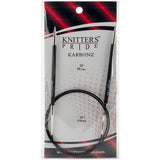 Knitter's Pride-Karbonz Fixed Circular Needles. Karbonz needles are made from high-tech carbon fiber with tips in nickel plated brass. The light bodied carbon fiber & sharp brass tips is guaranteed to provide an unparalleled knitting experience. Ideal for all types of yarns and for every project. A smooth join ensures easy glide & no snagging. Needles are easy to store and have a resilient flexible cord that lays flat with no kink or twist. This package contains one pair of circular needles with a 32 inch cord. Comes in a variety of sizes. Each sold separately. Imported.