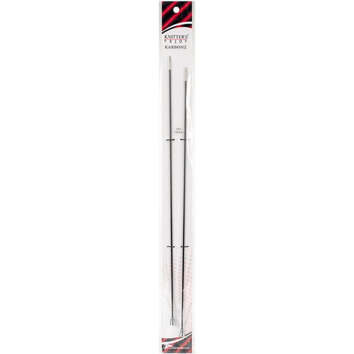 Knitter's Pride-Karbonz Single Pointed Needles. Perfect for any knitter! The light bodied carbon fiber and sharp brass tips is guaranteed to provide an unparalleled knitting experience. Ideal for all types of yarn and for every project. This package contains two 14 inch long needles. Comes in a variety of sizes. Each sold separately. Imported.