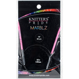 Knitter's Pride-Marblz Fixed Circular Needles. A great aid to simplify the difficult part of knitting. Marblz needles provide the right grab that allows for easy handling of slippery yarns. Sharp and gradually tapered points are ideal for all knitting projects. Lightweight and smooth but are exceptionally strong & durable. Needles are easy to store and have a resilient, flexible cord that lays flat with no kink or twist. This package contains one pair of circular needles with a 16 inch cord. Comes in a variety of sizes. Each sold separately. Imported.