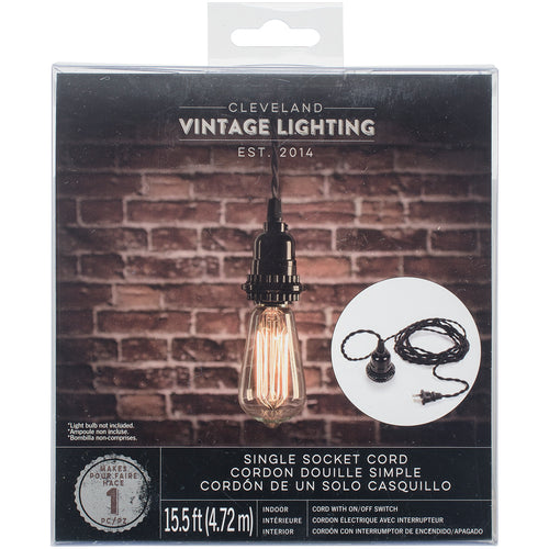 Darice-Light Socket With Cord & On/Off Switch. Inspired by the early 20th century's spirit of industry, Cleveland Vintage Lighting captures the craftsmanship, design aesthetic, and overall goal of using light to make spaces more illuminated. This package contains one 15-1/2 foot cord with an on/off switch, two cord clamps and two ceiling hooks. For indoor use only. Lightbulb not included. WARNING: This product contains chemicals known to the State of California to cause cancer, birth defects or other reproductive harm- do not mouth or chew. Imported.