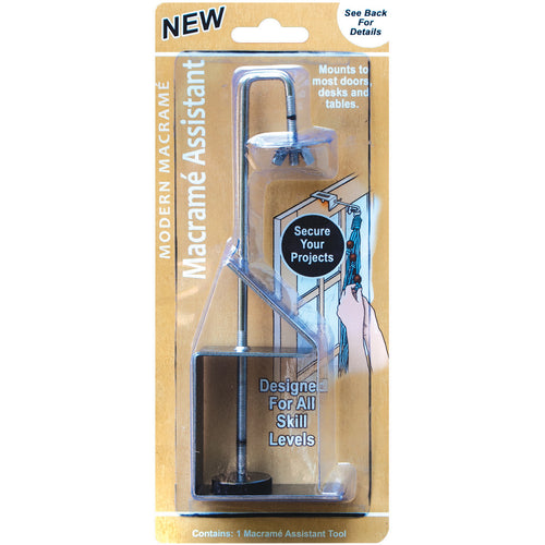Pepperell-Macrame Assistant. The Macrame Assistant is made of stainless steel, and works as a stability hook to help out with cumbersome and large projects. Made to grip onto most tables, doors and door frames. This 11x4-3/4x1-1/2 inch package contains one macram assistant. Imported.