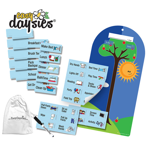 The multi-award winning Easy Daysies Magnetic Daily Schedules help children as young as preschool age become more cooperative, confident and independent by showing them the "shape of the day". Use these colorful magnets for a single routine, like bed time or the afterschool routine, or plan the whole day! This mom/teacher-created product helps children feel safe and confident knowing what is happening next! Wonderful for helping kids of any age, and children with special needs, deal with event transition, executive functioning, and anxiety. Recommended by name by child-psychologists, occupational therapists, and speech and language pathologists.