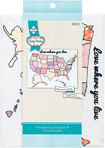 Needle Creations-Easy Peasy Embroidery Kit. This kit includes a stretched, pre-printed canvas design, thread, needle and complete instructions. The design is quick and easy! With the pre-printed embroidery design, you can sttich as much or as little as you want! Finished size: 8x10 inches. Imported.