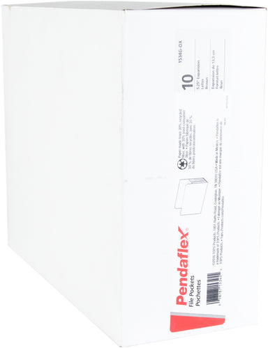 Fully lined reinforced tear resistant gussets. Gussets are 6.5 inch high for extra protection of documents. Durable red fiber material. Double thick manila lined front and back for added durability. Letter size. 5.25 inch expansion. Paper made from 10% post-consumer fiber. This package contains 10 Pendaflex(R) file pockets. Imported.
