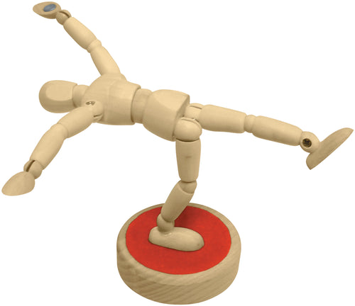 Use this poseable wooden figure to draw simple sketches of the body, double-check the placement of highlights or shadows, figure out proper proportions from different angles and more. This package contains one 8 inch tall poseable manikin. Imported.