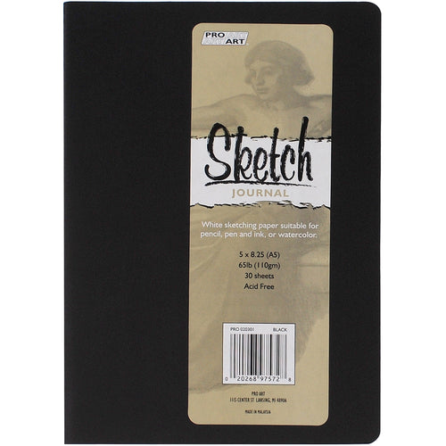 Pro Art-Softcover Sketch Journal. This journal has white sketching paper suitable for pencil, pen and ink or watercolor. This package contains one 8-1/4x5 inch sketch journal with thirty sheets of paper. Acid free. Comes in a variety of colors. Each sold separately. Imported.