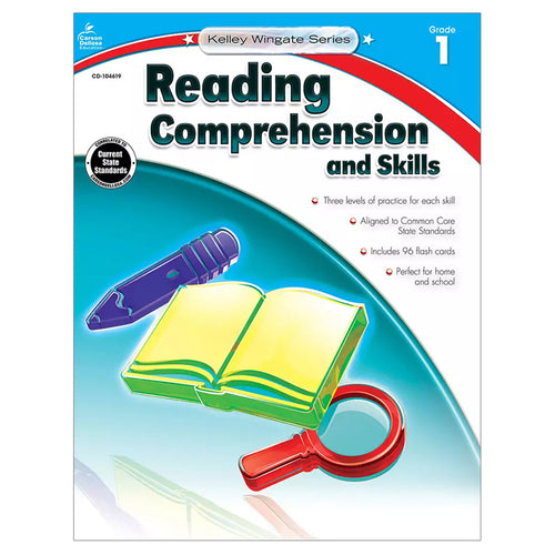 Reading Comprehension and Skills for first grade is designed to help students develop a strong foundation of reading basics so that they will become competent readers who can advance to more challenging texts. It includes engaging passages and stories about a variety of subjects to appeal to al readers. The book also encourages vocabulary development and reinforces reading comprehension through leveled activity pages that target each student's individual needs for support. Kelley Wingate 's Reading Comprehension and Skills series is the perfect choice for both teachers and parents. This valuable reading and comprehension skills practice book provides nearly 100 reproducible pages of exciting activities, 96 durable flash cards, and a motivating award certificate. The differentiated activity pages give students the practice they need at a level that is perfect to help them master basic reading comprehension skills necessary to succeed and are great for use at both school and home.