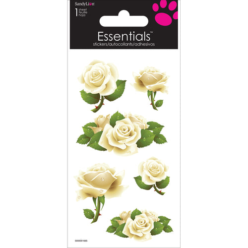 TRENDS INTERNATIONAL-Essentials Handmade Stickers. These stickers are a fun way to add a personal touch to any card or scrapbooking project. This package contains six stickers on a 3x5 inch backing sheet. Design: White Roses. Imported.