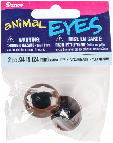 Glossy finished eyes with a colored iris and black pupil. Has a shank back and plastic washer for attaching. This package contains two .94 inch eyes and two plastic washers. WARNING: Choking Hazard. Not suitable for children under 3 years. Imported.